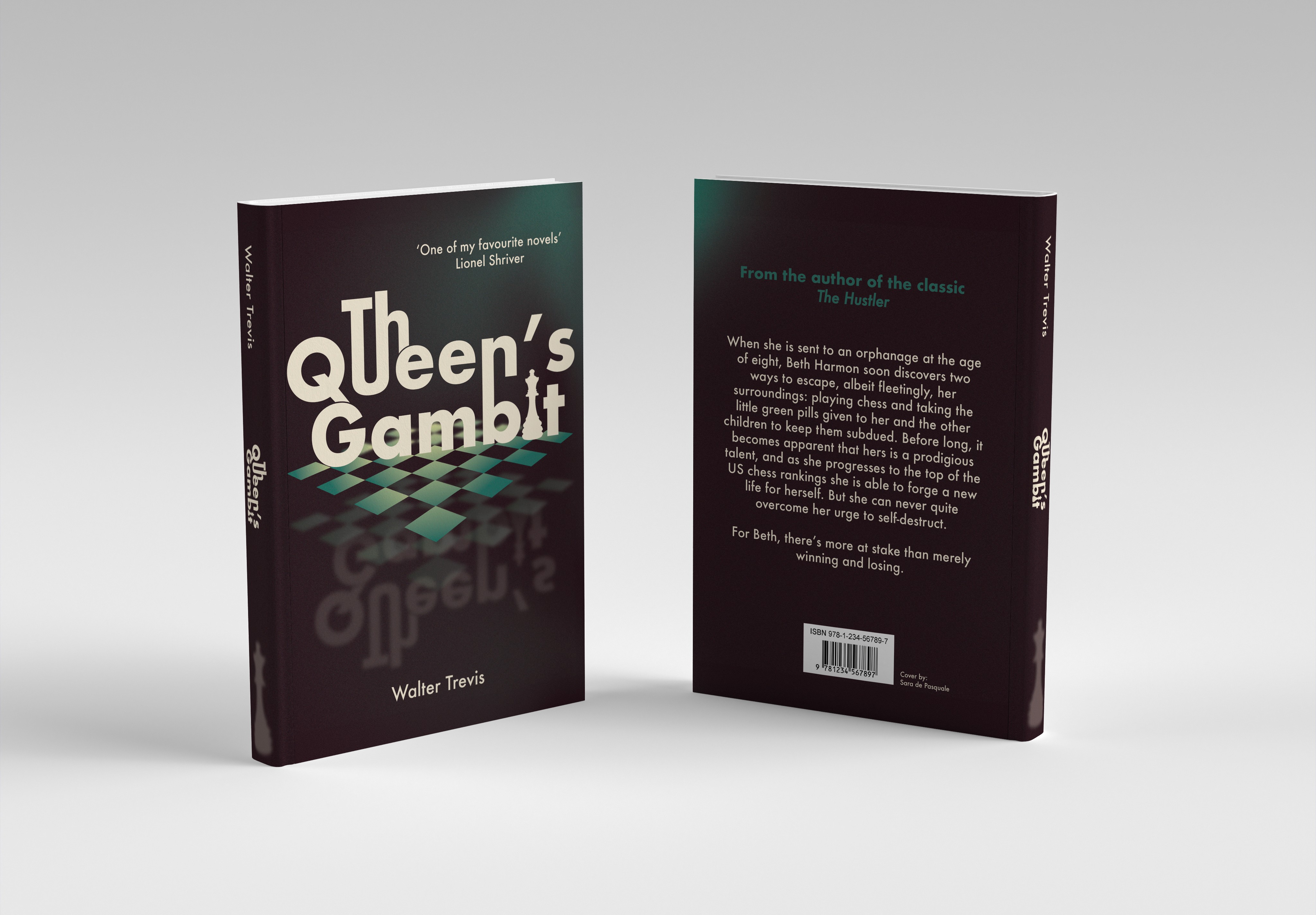Réalisation de la couverture du livre The Queen's Gambit. J’ai choisi la typographie Futura pour moderniser la couverture et je l’ai retravaillé afin que les lettres interagissent entre elles, créant un effet “dansant” qui rappelle le mouvement des pièces sur l’échiquier. Tout en conservant la couleur verte de l’échiquier, j’ai choisi des couleurs complémentaires pour harmoniser la palette : un beige clair pour le titre et un brun très foncé pour le fond. J’ai créé le fond sur Photoshop et le reste du design sur Adobe Illustrator.