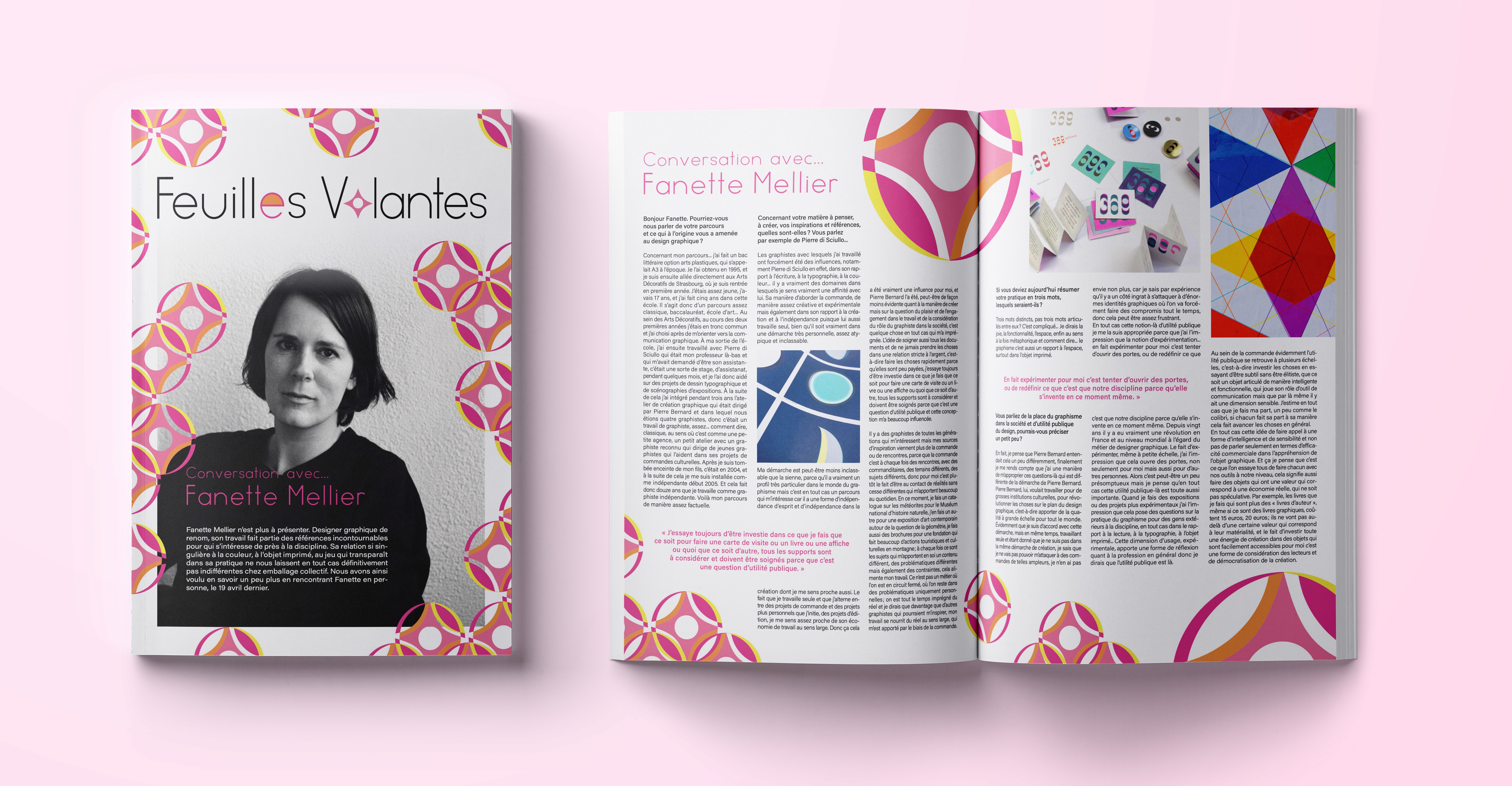 Inspirée par l’univers graphique et typographique de Fanette Mellier, j’ai réalisé un motif, une affiche et un magazine, explorant la couleur, la composition et le rythme visuel.